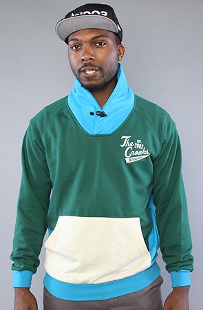 Crooks and Castles The International Shawl Collar Sweatshirt in Forest & Ocean hood ,Sweatshirts for Men: